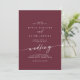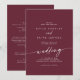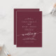 Cette faire-part de mariage boho-chic rouge bordeaux à l'avant et à l'arrière est parfaite pour un mariage minimaliste. Le vin de marron foncé rouge design bohème moderne dispose de calligraphie rustique simple avec un style unique mais classique. Enregistrez du papier en incluant plus de détails au verso de l'invitation plutôt que sur une carte de boîtier séparée.