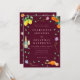 Celebrate your boho chic summer wedding with this beautifully modern watercolor invitation, featuring vibrant hand-painted bohemian botanicals and a refreshing European citrus and wine theme set against a romantic burgundy background.