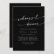 Cette invitation à dîner de répétition mariage chic et boho est parfaite pour une soirée minimaliste avant la répétition mariage. Le design bohème moderne noir foncé, sophistiqué et chic, se compose d'une calligraphie rustique simple au style unique mais classique.