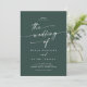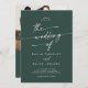 Ce chic boho vert émeraude photo et faire-part de mariage de code QR est parfait pour un mariage minimaliste. Le design bohème moderne et moderne de la forêt de chasseurs, sombre et maussade, se compose d'une calligraphie rustique simple au style unique mais classique. Personnalisez le dos de votre invitation de mariage avec votre photo fiançailles préférée. Inclure un code QR pour que l'invité puisse facilement RSVP, afficher les détails ou les deux.