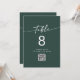 Ces numéros de table de code QR chic émeraude boho vert émeraude sont parfaits pour un mariage minimaliste. Le design bohème moderne et moderne de la forêt de chasseurs, sombre et maussade, se compose d'une calligraphie rustique simple au style unique mais classique. La conception s'imprime à l'avant et à l'arrière. Entrez votre adresse Web dans la section de code QR du modèle et le code QR sera automatiquement mis à jour et lié à votre site. Personnalisez chaque numéro de table dont vous avez besoin, en ajoutant chacun à votre panier individuellement.