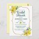 Cette jolie carte postale d'invitation à la douche nuptiale fleurie jaune printemps est parfaite pour une Fête des mariées de printemps ou une Fête des mariées d'été. Cet invitation unique et élégant de la carte postale de douche à nuptiale jaune présente des fleurs lumineuses en jaune avec des baies bleues et des accents de verdure botanique. Un cadre doré entoure élégamment l'invitation douillet de douche de nage en boho jaune. L'arrière de cette invitation à la douche nuptiale fleurie est orné d'un arrière - plan jaune citron à la mode avec des pois blancs. Si doux et élégant pour votre occasion spéciale avec votre famille et vos amis.