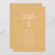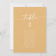 Ces cartes de sièges marigold jaune chic et boho sont parfaites pour un mariage minimaliste. Le design bohème moderne et coloré, audacieux et jaune vif, présente une calligraphie rustique simple au style unique mais classique. Ce tableau peut être utilisé sur la table ou comme carte de sièges suspendus. La conception s'imprime à l'avant et à l'arrière. Personnalisez chaque numéro de table dont vous avez besoin, en ajoutant chacun à votre panier individuellement.