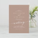 Cette faire-part de mariage taupe chic et neutre à l'avant et à l'arrière est parfaite pour un mariage minimaliste. Le ton de terre brun beige design bohème moderne se compose de calligraphie rustique simple avec un style unique mais classique. Enregistrez du papier en incluant plus de détails au verso de l'invitation plutôt que sur une carte de boîtier séparée.