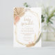 Cette invitation branchée à saupoudrer de bébé boho présente un cadre géométrique doré décoré de feuilles de palmiers tropicaux séchés à l'aquarelle et de gazon de pampas dans les tons beige, pêche et vert muet. Customisez le texte beige avec les détails de votre bébé sprinkle. L'envers est un camaïeu coordonné de beige foncé teinté pêche.