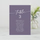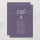 Ces cartes chic boho en plum pourpre suspendues sont parfaites pour un mariage minimaliste. Le ton moody brun violet bijou moderne design bohème dispose de calligraphie rustique simple avec un style unique mais classique. Ce tableau peut être utilisé sur la table ou comme carte de sièges suspendus. La conception s'imprime à l'avant et à l'arrière. Personnalisez chaque numéro de table dont vous avez besoin, en ajoutant chacun à votre panier individuellement.