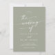 Cette photo verte chic et boho et son faire-part de mariage de code QR sont parfaits pour un mariage minimaliste. La tonalité neutre en terre verte design bohème moderne se caractérise par une calligraphie rustique simple au style unique mais classique. Personnalisez le dos de votre invitation de mariage avec votre photo fiançailles préférée. Inclure un code QR pour que l'invité puisse facilement RSVP, afficher les détails ou les deux.