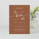 Ce faire-part de mariage espagnol chic en terre cuite chic boho QR code est parfait pour un mariage minimaliste. Le design moderne et bohème orangé terreux présente une calligraphie rustique simple, avec un style unique mais classique. Ajoutez un code QR au dos de votre invitation de mariage pour que vous puissiez facilement vous inscrire à RSVP, voir les détails ou les deux.