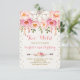 Invitation Florale Boho rose et or "Two Wild" avec attrapeur de rêve floral féminin et confetti en faux or