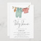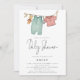 Boho Chic Clothes on Washing Line Baby shower. douche neutre genre avec un ensemble de script informel pour le Baby shower et le reste du texte que vous pouvez facilement personnaliser.