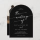 Cette photo couleur boho modifiable et le faire-part de mariage d'arc de code QR est parfait pour un mariage minimaliste. Le design bohème moderne noir foncé, sophistiqué et chic, se compose d'une calligraphie rustique simple au style unique mais classique. Parfait pour toute saison : printemps, été, automne ou hiver. Personnalisez le dos de votre invitation de mariage avec votre photo fiançailles préférée. Inclure un code QR pour que l'invité puisse facilement RSVP, afficher les détails ou les deux.
