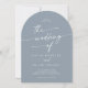 Cette faire-part de mariage d'arc de code QR et photo bleu bouho est parfaite pour un mariage minimaliste. Le design moderne et bohème, bleu clair neutre, présente une calligraphie rustique simple, avec un style unique mais classique. Personnalisez le dos de votre invitation de mariage avec votre photo fiançailles préférée. Inclure un code QR pour que l'invité puisse facilement RSVP, afficher les détails ou les deux.
