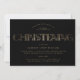 Carte d'invitation religieuse de baptême non photo, style Art Nouveau, classe bohème avec typographie à feuille d'or fausse sur fond noir.