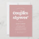 Cette invitation simple et boho mariage couple douche dispose d'une typographie blanche rétro sur un arrière - plan rose rose poussiéreux.
