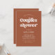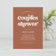 Cette simple et boho mariage couple douche invitation dispose d'une typographie blanche et rétro sur un arrière - plan neutre en terre cuite.