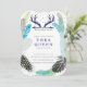 Invitation Boho tribale pour baby shower ornée de plumes, flèches, bois et cerfs. Organisez une fête avec cette invitation