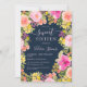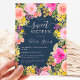 Un Boho joli jardin de fleurs sauvages Sweet invitation 16 anniversaire avec illustration florale peinte à la main en rose, jaune, pêche fleurs et roses sauvages de prairie, sauge vert eucalyptus et verdure sur éditable bleu marine foncé. Parfait pour l'été, jardin extérieur fête d'anniversaire.