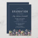 Invitation Boho Fleur sauvage Navy Blue Graduation Party