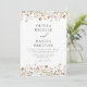 Invitation vos invités avec cette invitation de mariage de jardin blanc fleur sauvage boho. Doté d'un arrière - plan blanc immaculé, de délicats fleurs sauvages d'aquarelle peints à la main et d'une élégante typographie moderne, ce design intemporel allie charme bohème rustique et style mariage classique. Parfait pour les cérémonies du printemps ou de l'été, les fêtes du jardin ou les couples qui aiment la papeterie propre et minimaliste avec une touche florale. Personnalisez avec vos détails pour une conservation durable.