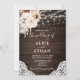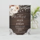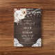L'élégante faire-part de mariage rustique présente des fleurs neutres et de l'herbe pampa sur un arrière - plan en bois.