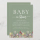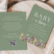 Invitation Boho Fleurs sauvages Sage Green QR Code Baby showe