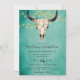 Ce Faire-part de mariage est orné d'un crâne de vache fleuri aux jolies lampes à cordes jaunes sur un arrière - plan turquoise.