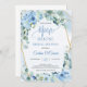Invitation Boho Ice bleu fleuri eucalyptus or or Open House