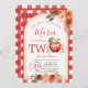 Pomme Deuxième anniversaire Invitation fille, La pomme de notre oeil tourne deux, Apple En vichy 2e anniversaire Automne