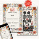Discover the delightful blend of our Skeleton and Tarot themes, featuring "The Lovers." Our Skeleton motif, selected for its romantic charm, embodies the timeless journey of soulmates uniting in an everlasting bond. This design transcends the physical realm, symbolizing a love that extends into eternity. Complemented by the mysticism of the Tarot, our RSVP matches the invitation and the details card and offers a playful, colorful aesthetic, ideal for lovers of eternal romance and gothic weddings. A colorful floral frame in letterpress style make the invitation more playful. Enhancing the invitation's elegance are the monograms, showcased on both sides, adding a stylish touch to this enchanting design. The wording is completely editable. You can change size, color, font, position in page.