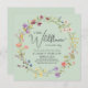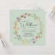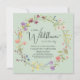 Une élégante invitation à la douche pour bébé verte sauge avec "un petit fleur sauvage est en route" écrite dans un mélange de typographie moderne et d'un script élégant, et une couronne d'aquarelles fleurs sauvages d'inspiration boho. Personnalisez le nom de la mère et les détails de la douche en simple typographie.