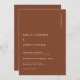 A minimalist yet chic wedding invitation designed in terracotta for timeless sophistication. The layout embraces modern typography, with subtle elegance. Its classic aesthetic is elevated by a luxe finish, creating a striking contrast that feels both contemporary and enduring. Perfect for couples who value understated refinement, this invitation exudes confidence and style while remaining effortlessly graceful.