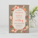 Faire-part de mariage moderne Boho chute en terre cuite florale avec de jolies teintes chaudes peintes à la main de la terre cuite, pêche et verdure foncée avec un masque rond. Parfait pour la fête de mariage à thème boho automne. Avec une typographie de script moderne sur kaki brun.