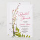 Célébrez votre prochain mariage avec notre Boho Rustic Fleur sauvage Photo Bridal Shower Invitation, avec une photo originale de fleurs sauvages délicats. Cette élégante invitation présente un design naturel et serein avec de grands fleurs sauvages, fins et des feuilles verts luxuriants contre un arrière - plan blanc et doux. Le texte "Fête des mariées" est magnifiquement rendu dans une police de caractères stylée dans une teinte rose chaleureuse, créant un joli contraste avec les éléments naturels. Idéal pour une douche nuptiale d'inspiration jardin ou nature, cette invitation capte la beauté des fleurs sauvages et apporte une touche de plein air à votre événement spécial. Cette invitation combine la simplicité de la nature avec une typographie sophistiquée, ce qui en fait un choix charmant pour votre douche nuptiale.