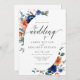 Invitation Boho Navy Floral Brûlé Orange Élégant Mariage