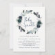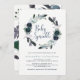 Cette invitation branchée et élégante à l'arrosage de bébé comprend une couronne composée de fleurs de pivoines bleu marine, de feuilles luxuriants, de baies et de plumes.
