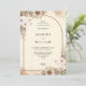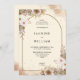 Une faire-part de mariage boho romantique et élégante avec des flores d'aquarelle neutre et douce dans les tons brun et beige. Parfait pour les mariages bohèmes modernes, rustiques, automnaux, extérieurs ou modernes. Le cadre minimaliste en arc, combiné à des fleurs peintes à la main, crée un design de papeterie mariage rêveur et esthétique.