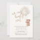 Boho minimaliste We Can Bearly Wait Baby Shower Invitations, design feature aquarelle ours en peluche avec cravate arc et ballons de couleur neutre en crème, beige, or, bronze, couleurs. Célébrez le baby shower avec ce design neutre pour le genre, parfait pour le bébé garçon et la fille. Ce design est également parfait pour bébé attendu en été, en automne, au printemps et en hiver.