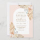 Éblouissez vos invités avec cet élégant invitation de mariage avec de belles fleurs pastel et des feuilles de palmiers séchés avec QR Code pour RSVP en ligne. Ajoutez simplement les détails de votre événement sur ce modèle facile à utiliser et décorez cette carte avec vos photos préférées pour en faire une invitation personnalisée unique.