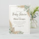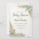 Baby shower boho élégant avec gazon de pampas, végétation d'eucalyptus et tons neutres modernes.