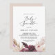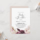 Cette invitation à saupoudrer d'herbe de pampas boho est parfaite pour un baby shower d'été. L'aquarelle fleurie présente des fleurs bohèmes bordeaux et roses rousses avec des sprigs de pampa neutres et des feuilles de palmiers séchés dorés.