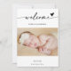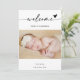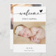 Celebrate the arrival of your little one with this boho photo welcome baby announcement card. The design features refined handwritten typography, handdrawn heart, and a clean neutral layout, which captures the beauty of simplicity. The flowing calligraphy headline “Welcome” adds a gentle, heartfelt touch that's perfect for announcing your newborn’s name, birth date, weight, and time. Ideal for printing or digital sharing, this card complements any aesthetic from modern chic to classic understated elegance.