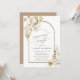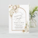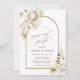 Cette carte d'invitation à la fête de fiançailles présente une protéa d'aquarelle peinte, des orchidées blanches, de l'herbe de pampas sèche, des anthuriums blancs, des fleurs sauvages, des feuilles exotiques avec un cadre en arc. Pour une personnalisation plus avancée de cette conception, cliquez sur le lien "customiser plus loin". Des articles correspondants sont également disponibles.