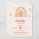 Boho style arc-en-ciel invitation fête d'anniversaire avec rose pâle, rouges et oranges.