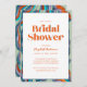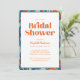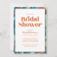 Vous recherchez une invitation moderne et branchée à votre Fête des mariées ? Regardez notre Boho Retro Green Orange Typographie Wavy Bridal Shower Invitation! Cette invitation à la douche nuptiale ondulée présente de belles aquarelles aux lignes ondulées peintes à la main, avec un design abstrait coloré et boho donnant un look unique et tendance.
