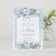 Invitation Boho romantique Pastel Bleu Blanc Fleurs d'argent