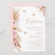 Boho rose Floral et papillons Baptême Invitation Ce baptême ou cette invitation à baptiser douce présente des tons roses, rousses et naturels bohème arrangements floraux et trois faux papillons parties scintillant en or rose.