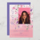Avec le texte du script "Graduate" violet de lavande foncée et la photo de votre diplômé, ce design unique de faire-part de graduation va certainement impressionner. De belles fleurs fleurs sauvages d'aquarelle sont superposées sur un arrière - plan d'aquarelle rose dégradé comme toile de fond pour la photo de votre grad sur le devant. Espace ci-dessous pour le nom du diplômé, la classe et l'école en sombres lavande violet texte. Le dos comporte une autre photo sur un simple arrière - plan de lavande profonde avec un texte rose pâle pour les détails et les plans de votre senior.