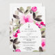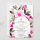 Annoncez votre mariage avec nos invitations peintes à la main, avec de jolies et charmantes fleurs rose vif et des feuilles verdoyants en aquarelle avec un script moderne cool brossé. Le script de brosse moderne ajoute une touche d'élégance à ces invitations uniques qui sont parfaites pour toute célébration à thème boho., parfait pour la fête de mariage en plein air et de jardin. Avec un cadre fleuri.