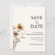 Parfait pour un mariage moderne, ce fleur sauvage fantaisiste boho vert enregistrer la date a une sensation vintage. Les fleurs sauvages verts Sage peuvent être vus dans ce design plante.