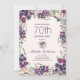 Belle invitation à la fête du 70ème anniversaire de style boho pour les femmes avec de magnifiques fleurs violettes et roses d'aquarelle et feuilles sauge vert sur un arrière - plan rose doux.